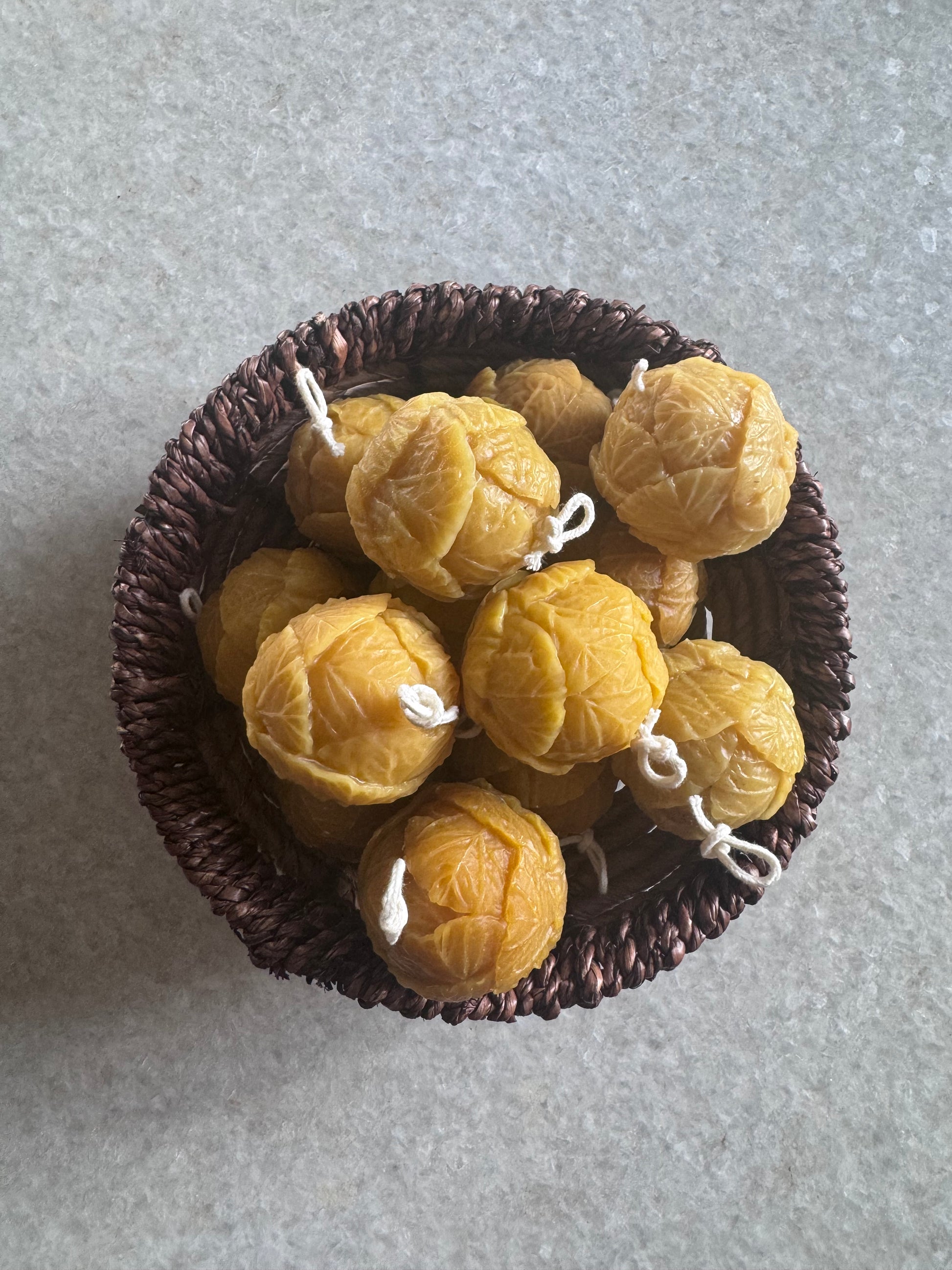Pure beeswax brussels sprout candle, handcrafted in Idaho, 1.8 ounces.