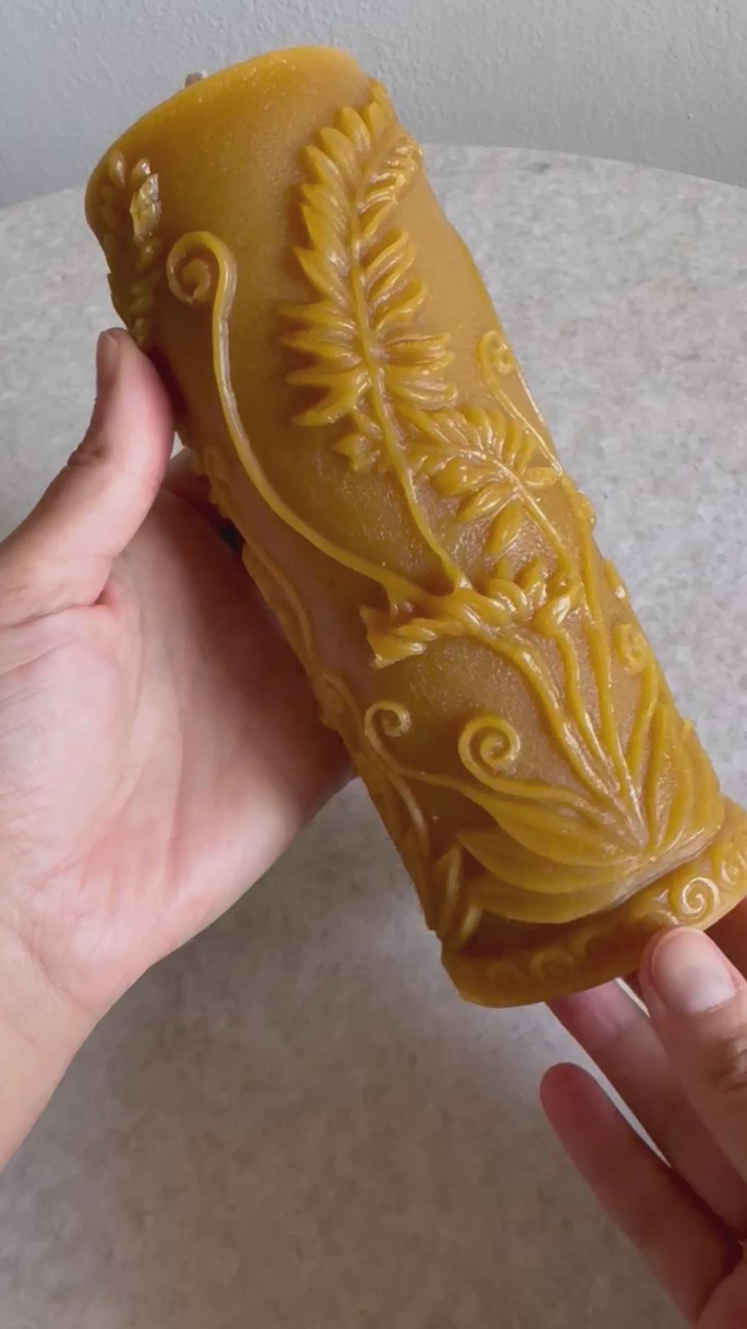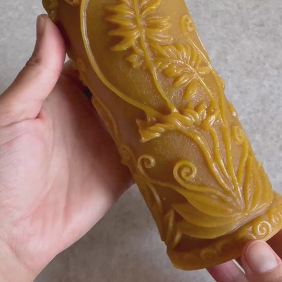 Beeswax fern pillar candle, handcrafted in Idaho, 16 ounces.