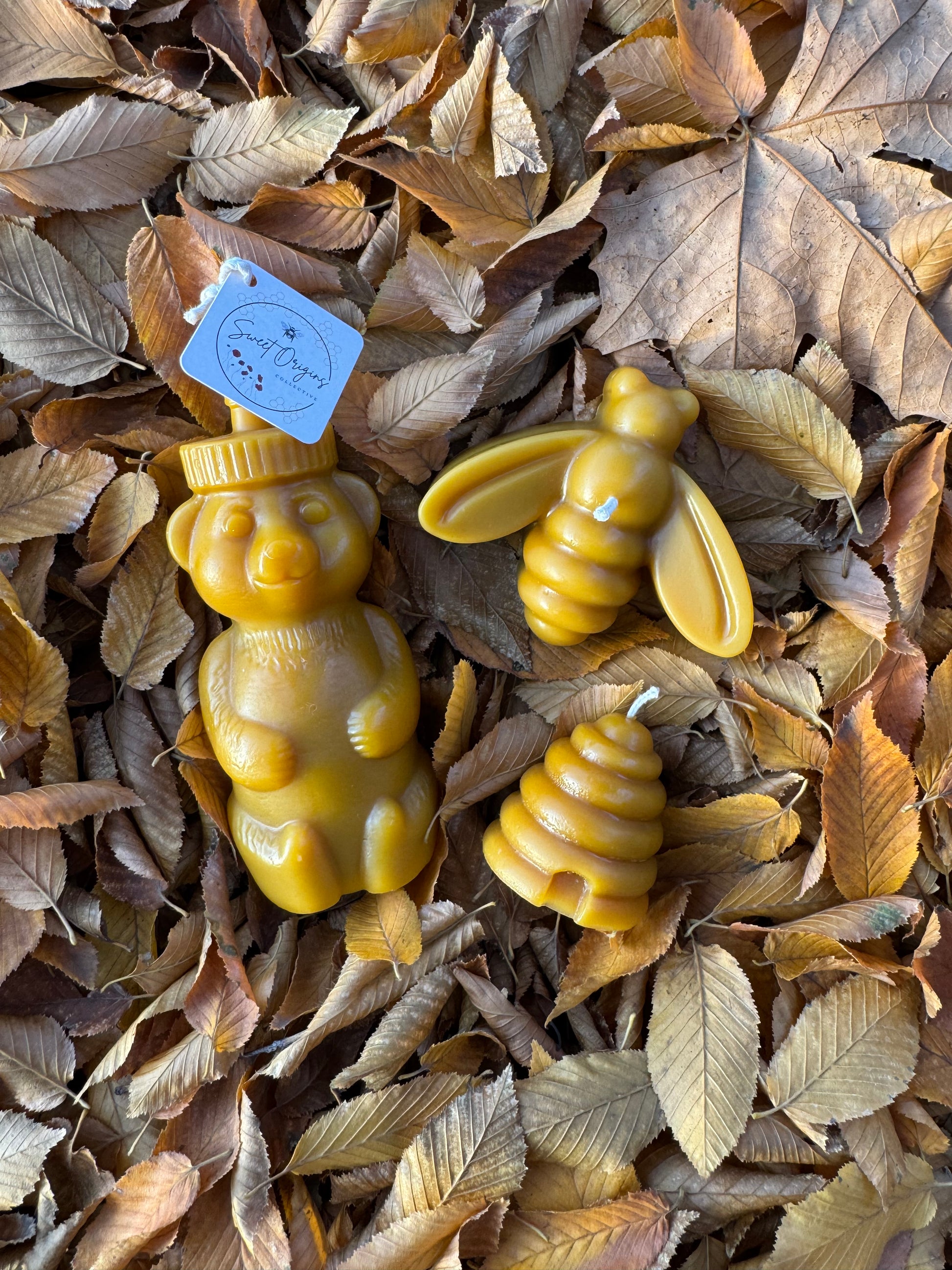 Beeswax honey bear candle, handcrafted in Idaho, 8 ounces.