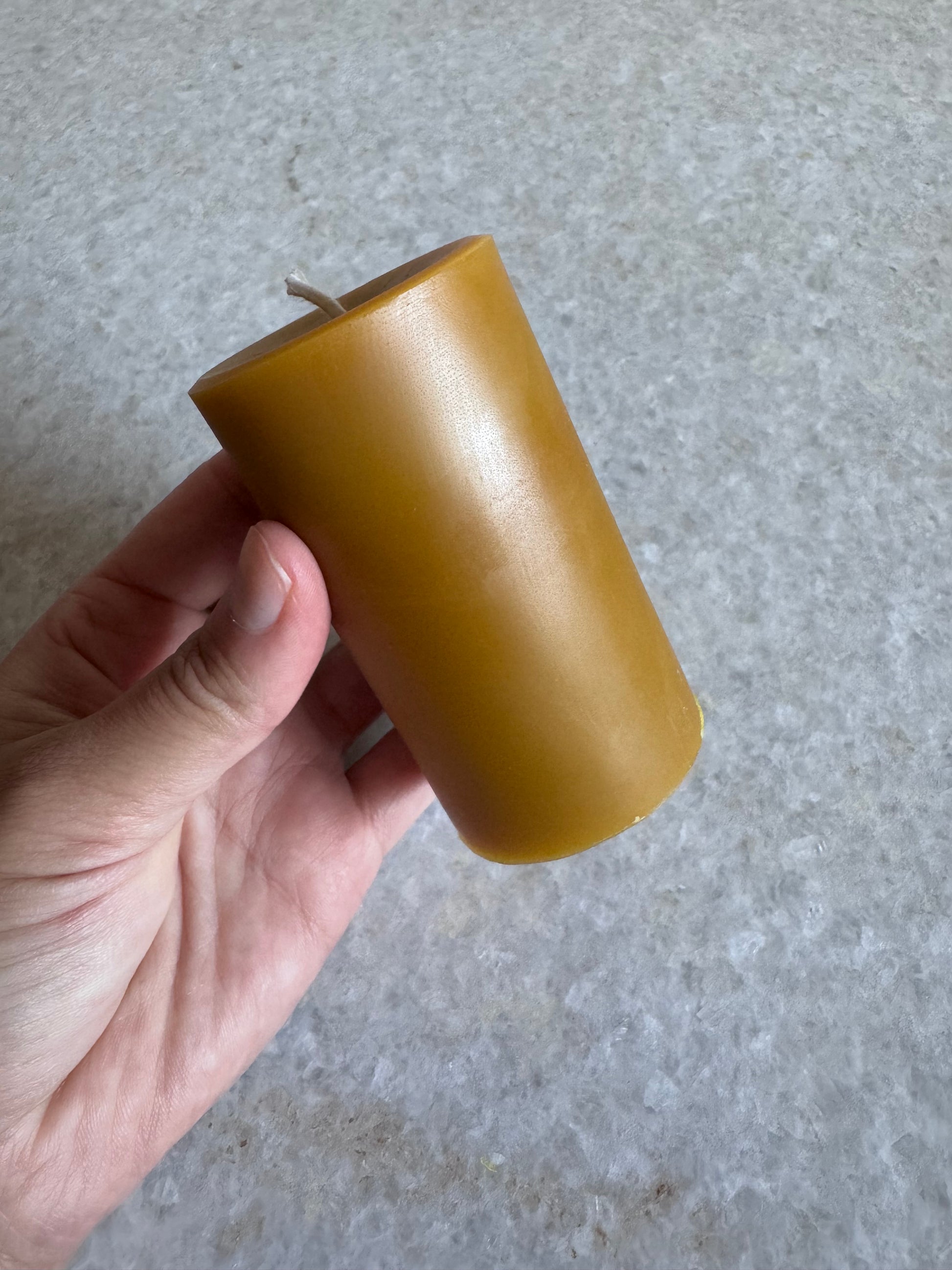 Beeswax pillar candle, handcrafted in Idaho, 4.7 ounces.